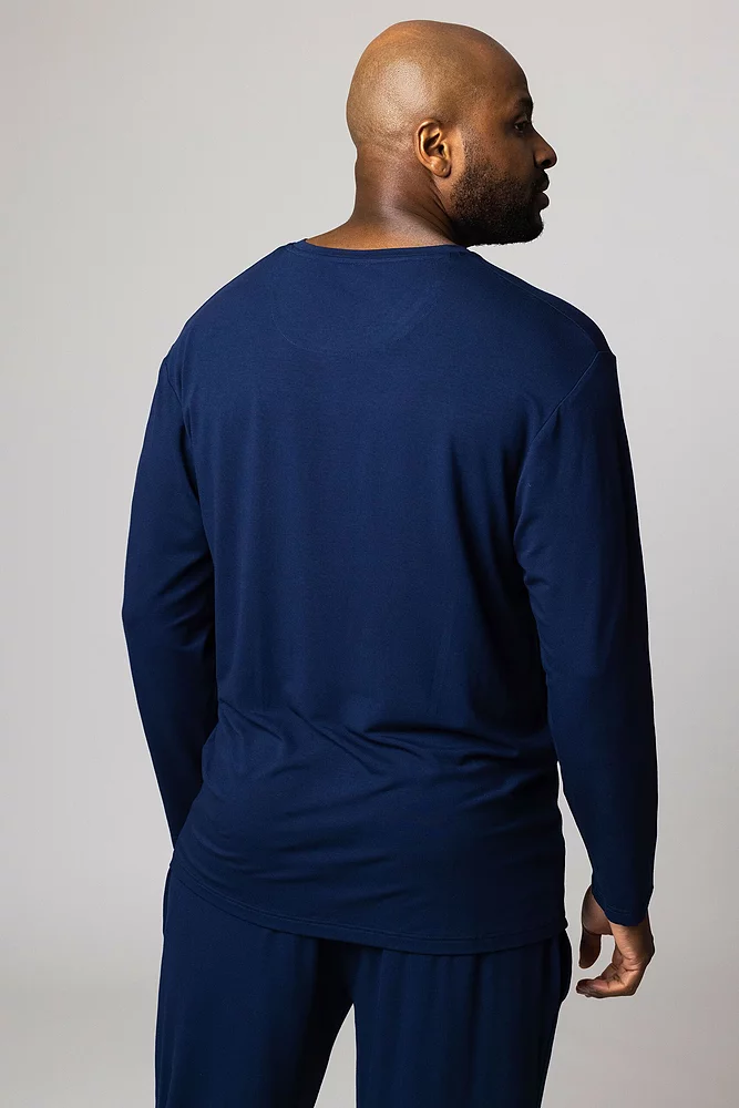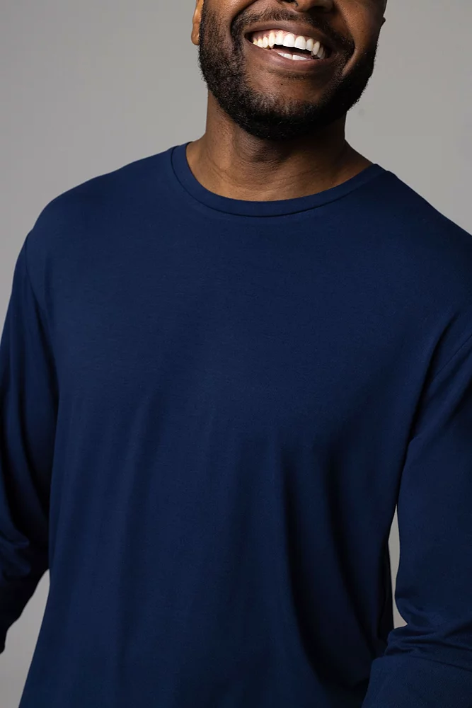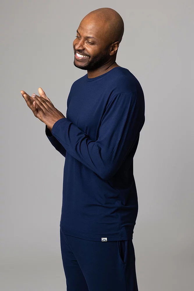 Casually stylish, our men’s Lazy Panda Bamboo Loungewear Selection Long Sleeved Top is a quality basic that should have a place in every man’s wardrobe. This softly tailored long sleeve shirt looks good instantly, whether you pull it on for that last-minute video-call, teamed with a jacket, hoodie and trousers to go out in or just for ultra-comfortable lounging. Put this top together with other items from our Lazy Panda Bamboo Loungewear Selection for an instantly coordinated, effortless look. These long-sleeved shirts are made from 95% bamboo rich stretch jersey giving them a light, smooth and silky feel against the skin.